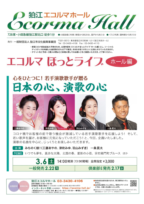 東京 狛江 「エコルマほっとライブ:ホール編」 ~演歌の心、演歌の心~