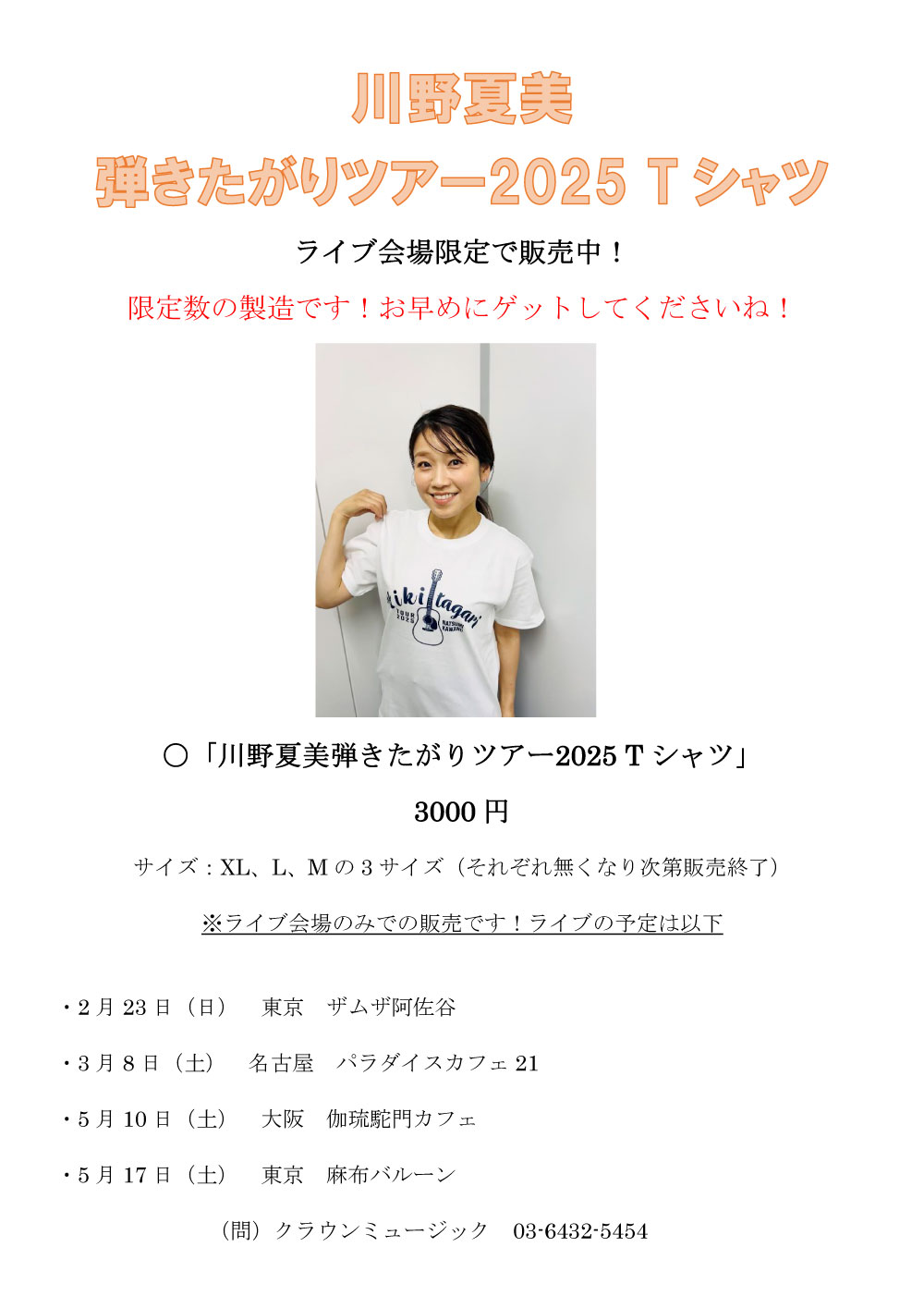 「弾きたがりツアー2025 Tシャツ」ライブ会場限定で発売中!