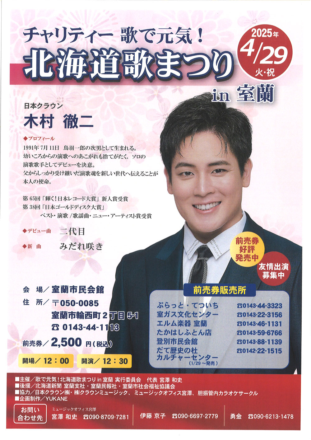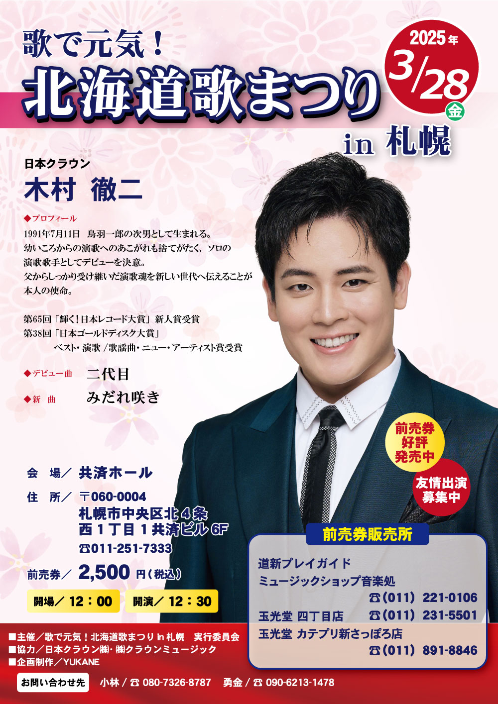 当日、会場にて木村徹二のデビューシングル「二代目」をご予約、ご購入頂くと、ミニライブ終了後に実施する特典会(2ショット撮影)にご参加頂けます。